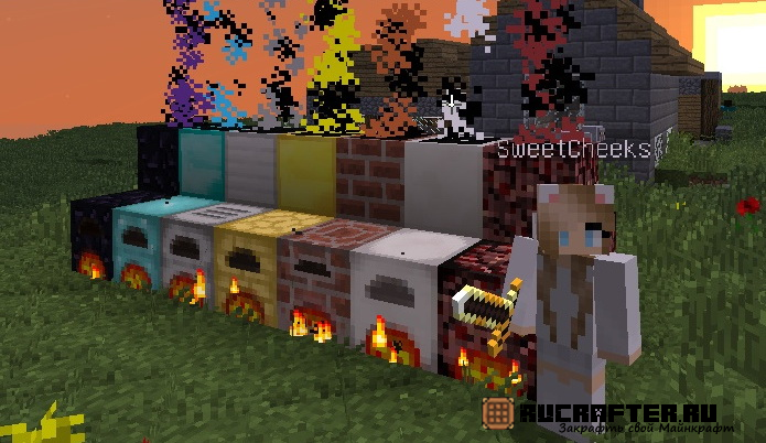 Мод добавит в игру возможность строить реалистичные дымоходы из стандартных блоков в Minecraft. Чтобы пошел дым, вам необходимо рядом с трубой поставить работающую печку. Цвет дыма завесит от блока с помощью которого создана труба.